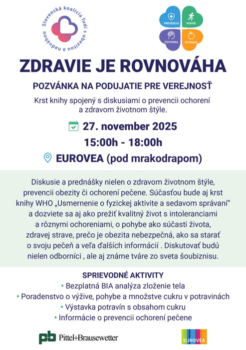 Podujatie plné diskusií o zdravom životnom štýle, prevencii obezity a ochorení pečene. Súčasťou programu bude aj slávnostný krst knihy WHO „Usmernenie o fyzickej aktivite a sedavom správaní".
